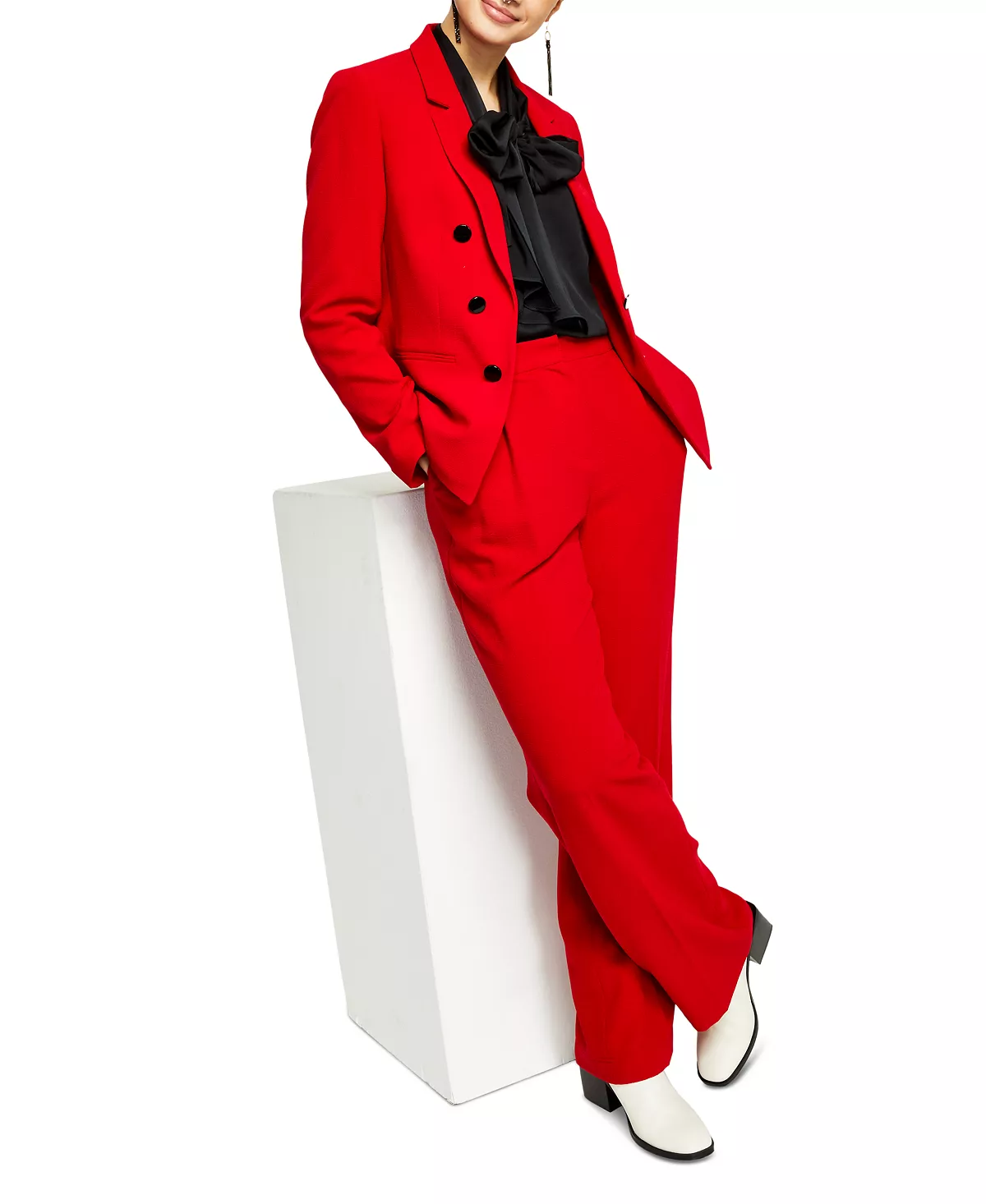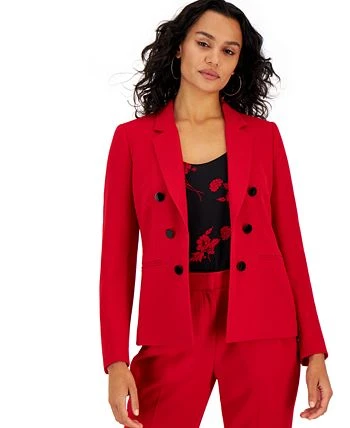 Suit up in style with Bar III’s faux double-breasted jacket.