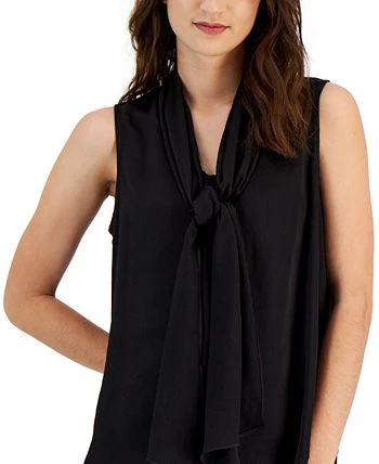 Sleek, simple, sophisticated. The tie detail at the neckline of this Bar III blouse elevates a timeless workwear classic.