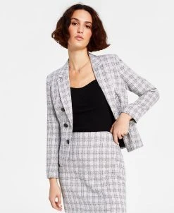 For a chic work look, Bar III presents this tweed faux double-breasted blazer, sure to be your new fave.