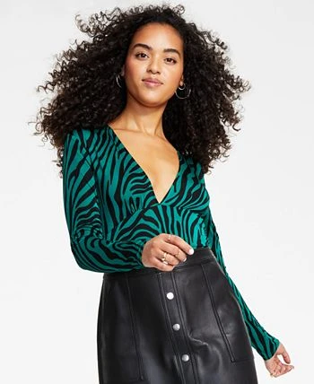 Get spotted in this chic bodysuit from Bar III designed with a deep V-neck and a gorgeous zebra print throughout.