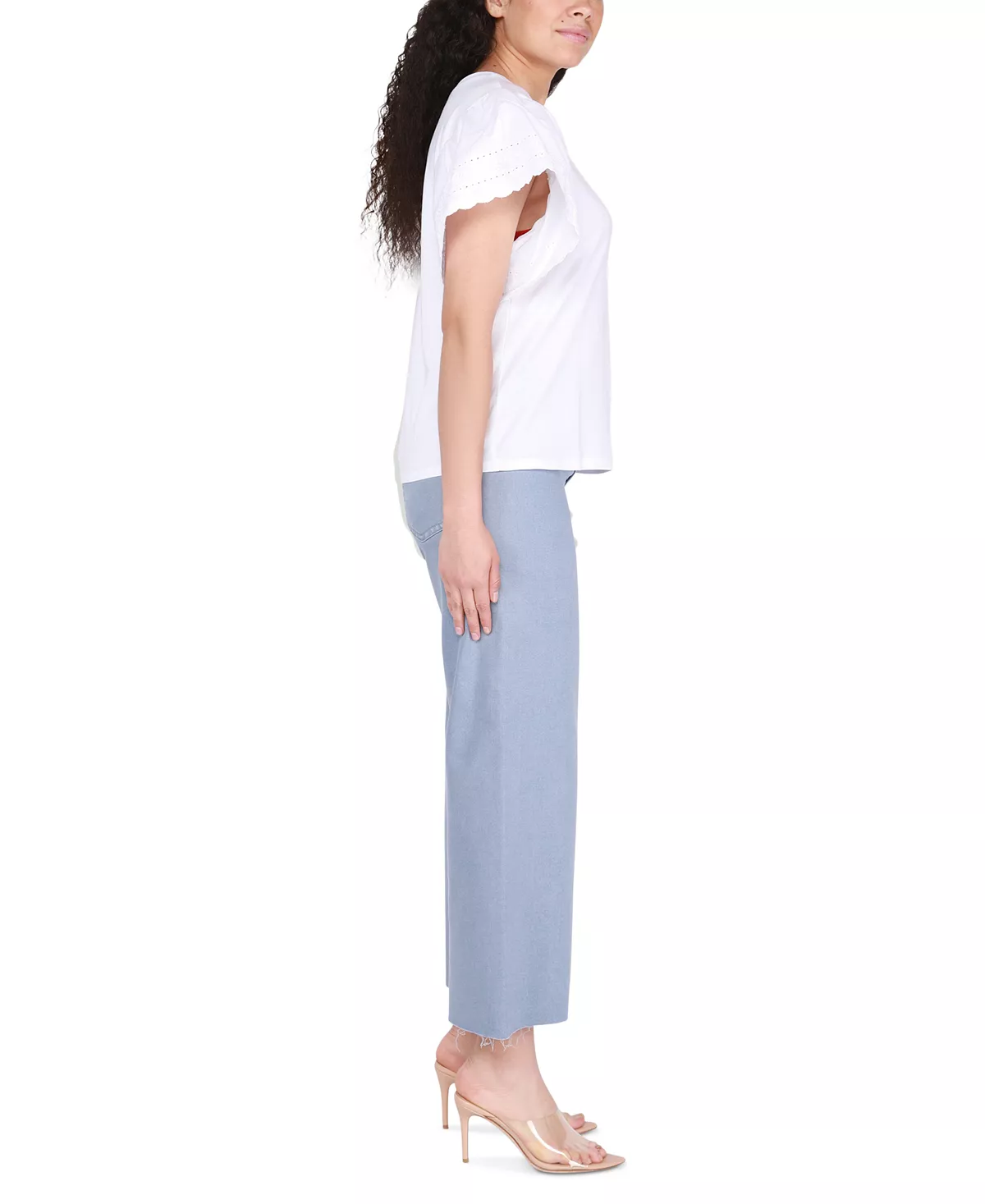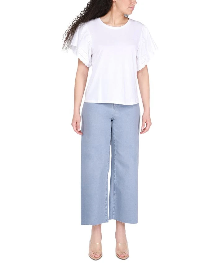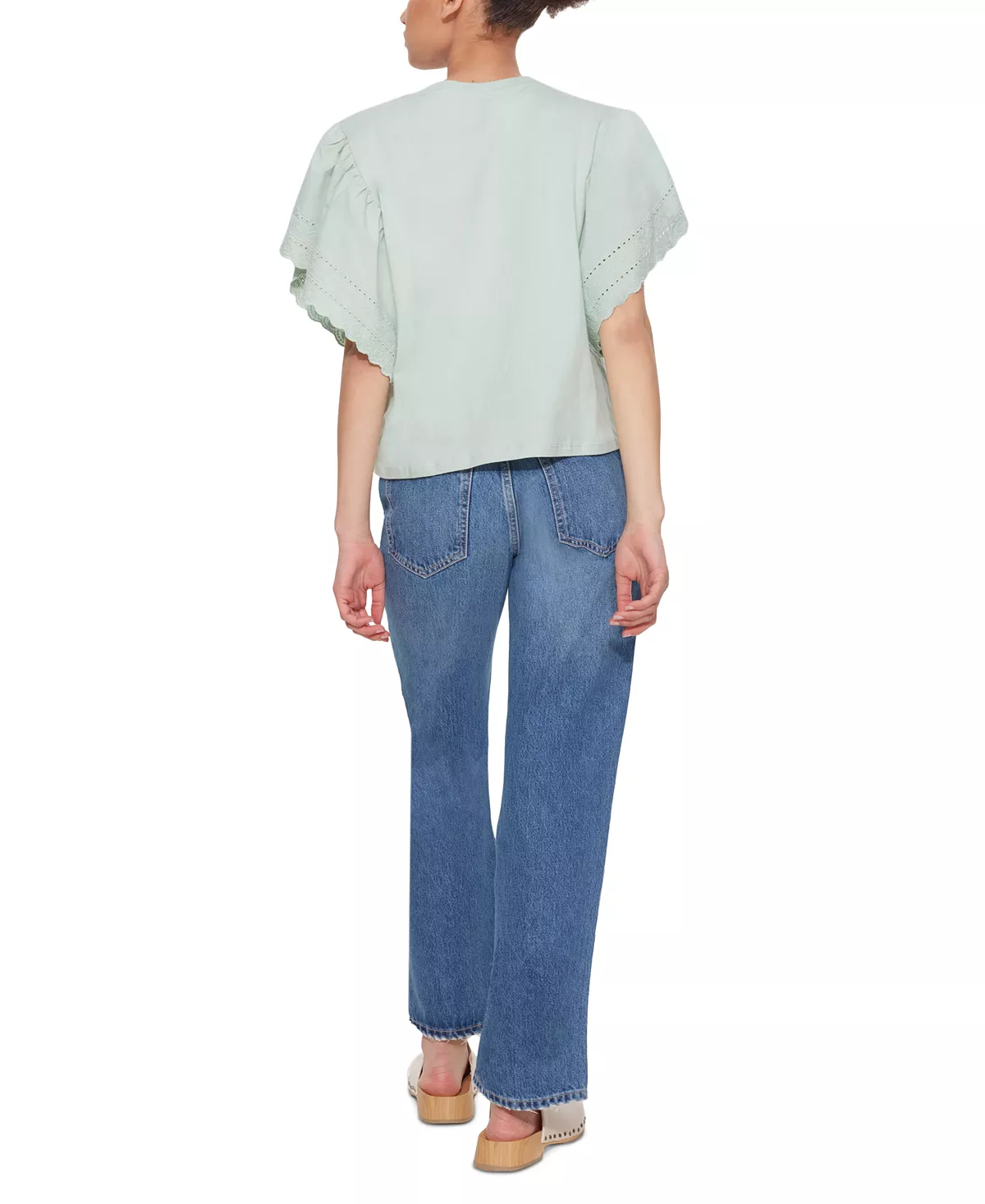 Delicate eyelet details bring a mega feminine vibe to this flutter-sleeve top from Black Tape.