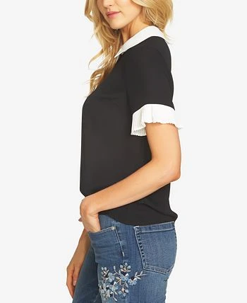 A contrast collar and pleated cuffs create a polished, layered look for a CeCe blouse that’s both vibrant and charming.