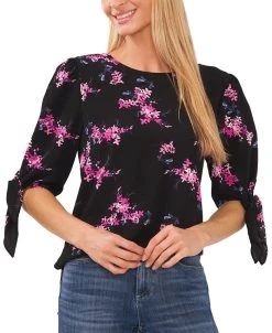 Add a touch of feminine flair to your wardrobe with this beautifully printed tie-sleeve blouse from CeCe.