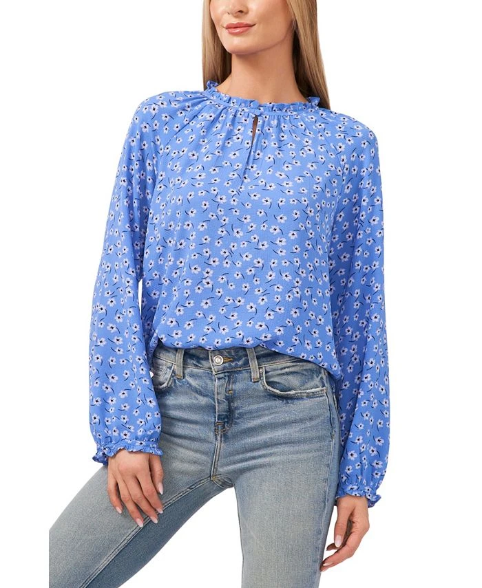 A ditsy floral print dresses up this split-neckline, ruffle-cuff top from CeCe.