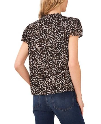 Fluttery short sleeves and ties at the neckline pair with a fierce print on this stylish blouse from CeCe.