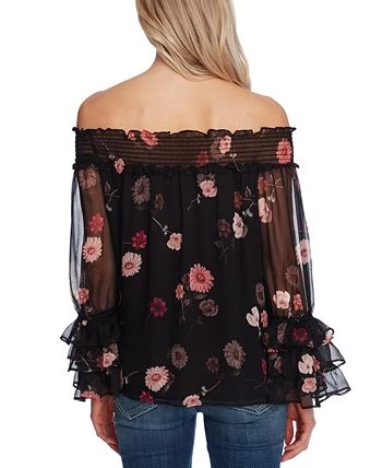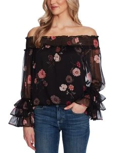Soft and stylishly sweet, beautiful blooms are always the right choice with this romantic off-the-shoulder top from CeCe, finished with dramatic tiered ruffled cuffs.