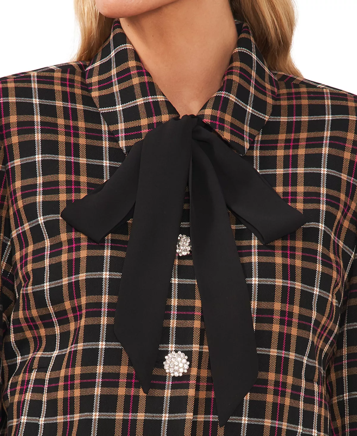 Refresh your professional look with this charming button-up jacket from CeCe, finished with an ultra-chic self-tie at the neckline.