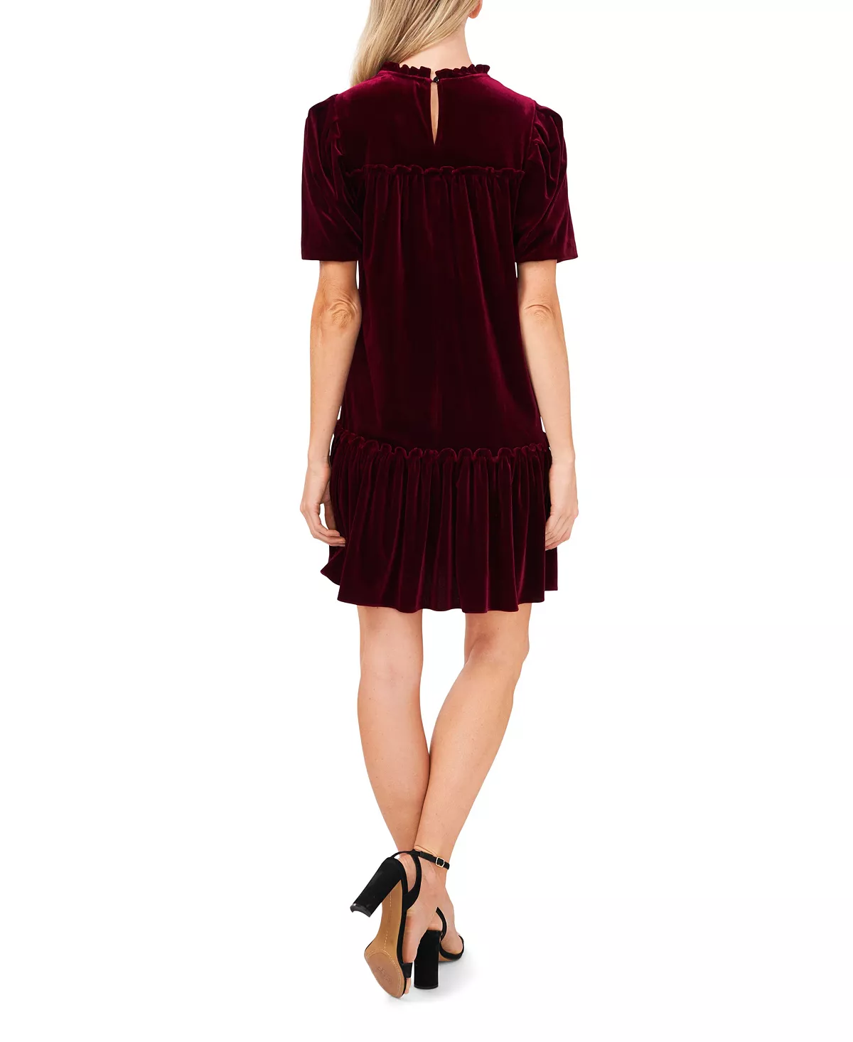 Fall in love with CeCe’s ruffled velvet dress, designed for effortless wear with a flirty tiered skirt.