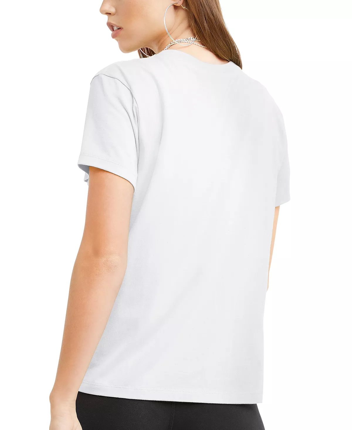 On the run or just running errands, this soft cotton T-shirt from Champion is a great pick with a crewneck and front logo print.