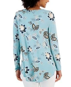 Ease into style with this Charter Club top, complete with a neckline accented by a point collar and an all-over beautiful print.