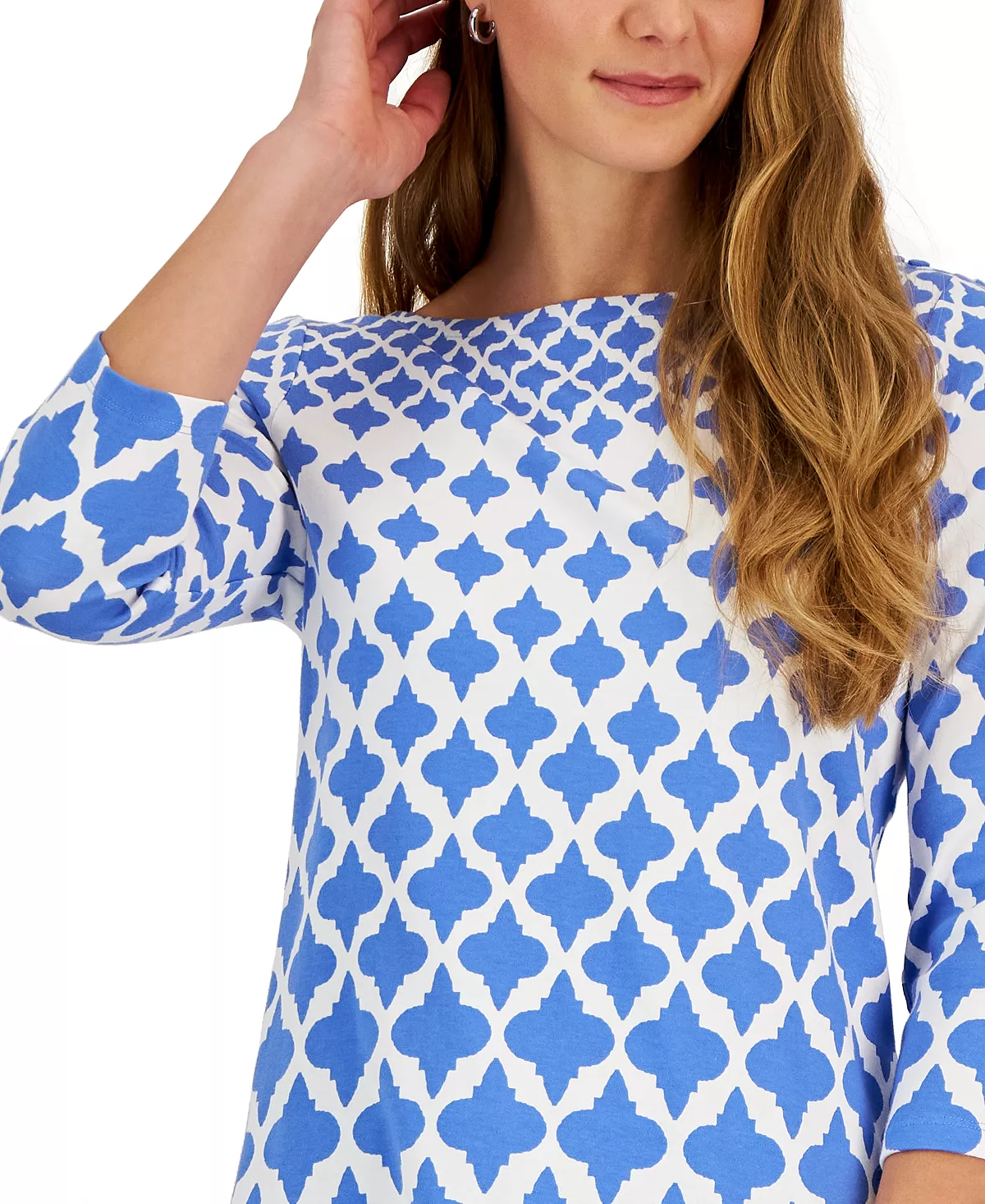 A bold print brings fresh style to this Charter Club top, in all-cotton knit with 3/4-sleeves.