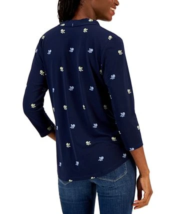 Top off your look in pretty-chic style with Charter Club’s knit top styled with a classic V-neck and a ditsy floral print.