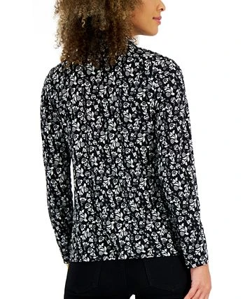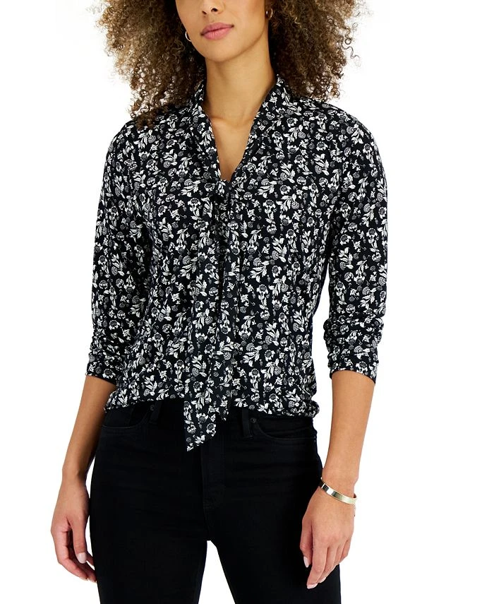 A wardrobe favorite, this floral print blouse by Charter Club exudes effortless style with the addition of a self-tie at the neckline.