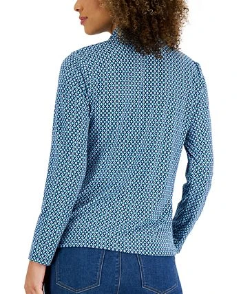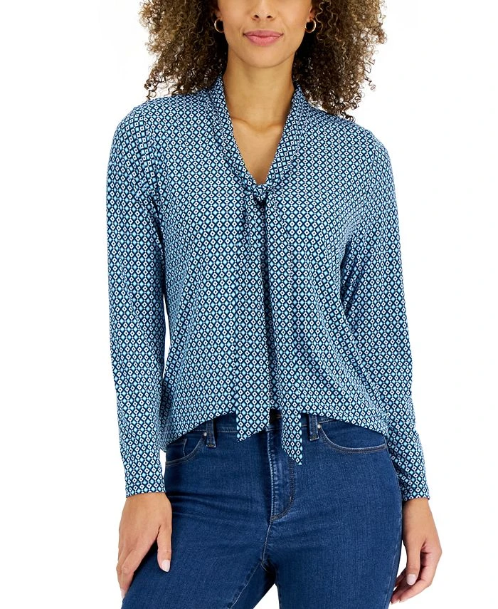A subtle geometric printed pattern and a tie at the front compliment this blouse by Charter Club.