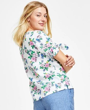 Airy in linen, this woven top by Charter Club has an effortless vibe with its tie sleeves and flattering fit.