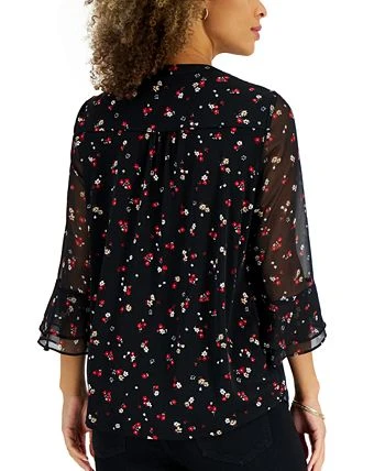 Pleats and bell sleeves lend cottage romance to this pretty top from Charter Club.