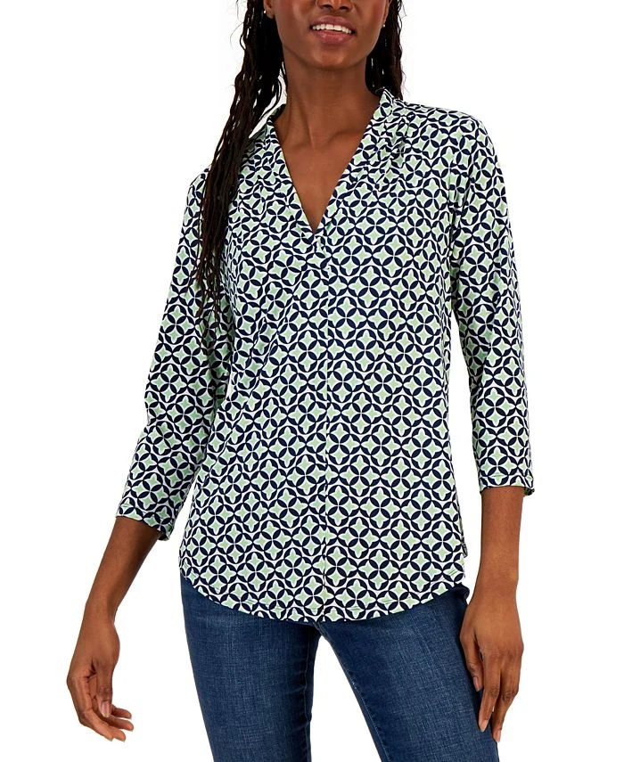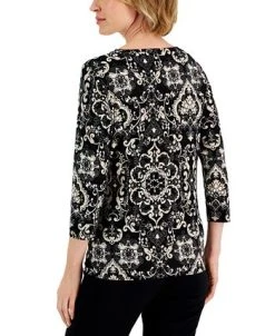 Effortless style is closer than you think with Charter Club’s printed 3/4-sleeve knit top.
