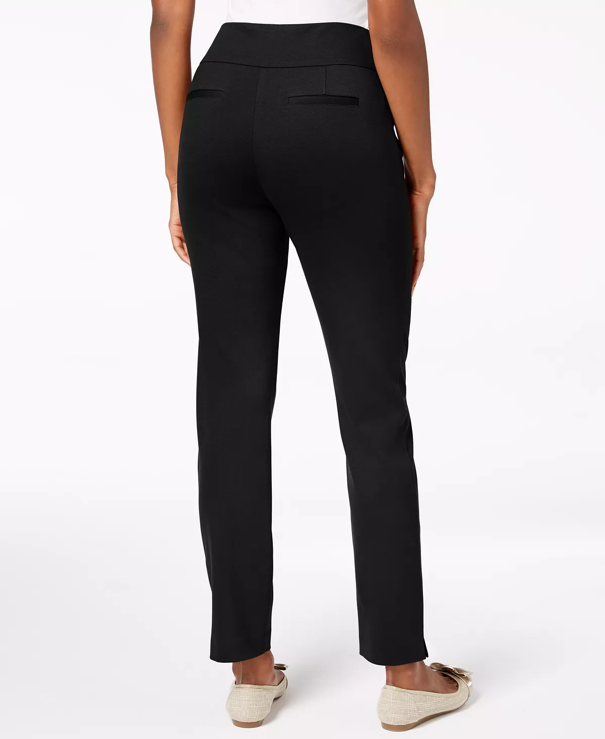 Showcasing a classic slim leg, these pull-on ponte pants from Charter Club feature a wide waistband for a sleek silhouette.