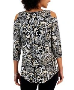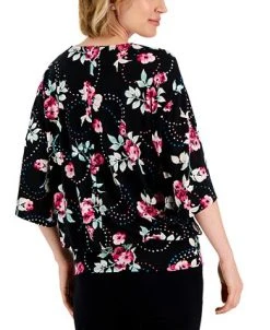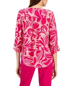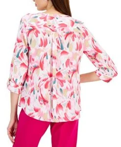 A polished update on the classic polo, this knit top from Charter Club features stylish pleats and a pretty print.