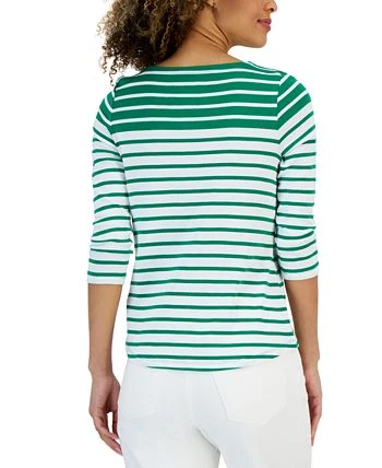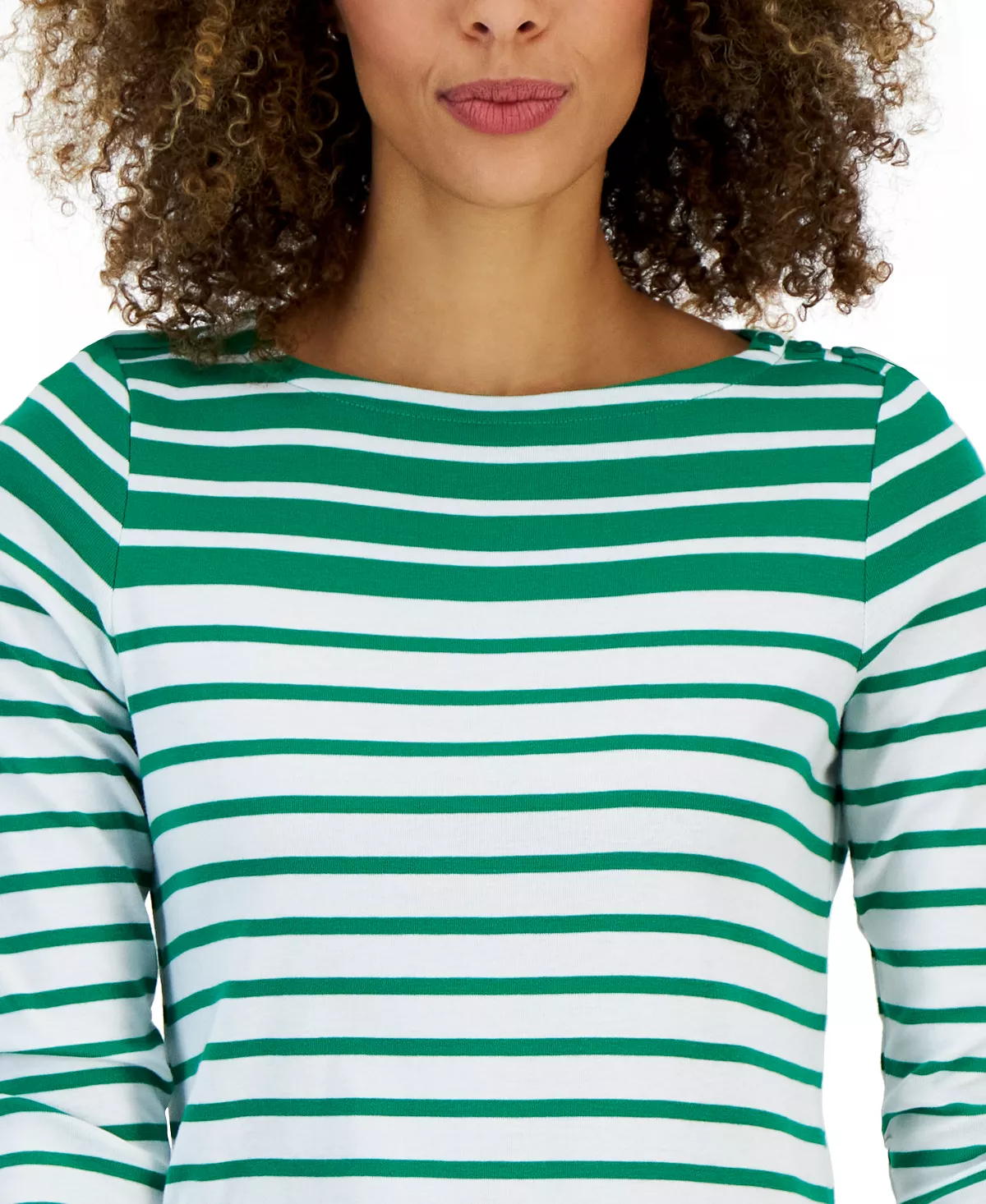 Colorblocked stripes bring a crisp look to this Charter Club top, in all-cotton knit accented with buttons at the shoulders.