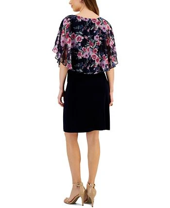 A floral cape overlay elevates this women’s A-line dress from Connected, keep it casual or accessorize for a dressy finish.