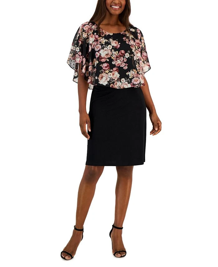 A floral-adorned cape overlay brings this sheath dress by Connected to life, the floral layer that is also finished in a Swiss-dot texture, flawlessly drapes over the tailored bodice, creating a look that will be sure to turn heads at your neck cocktail party.