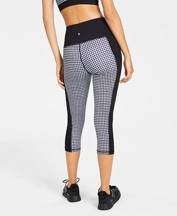 Keep moving in style with a pair of compressive cropped leggings from ID Ideology, designed with a mix of solid and houndstooth-print panels.