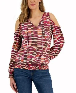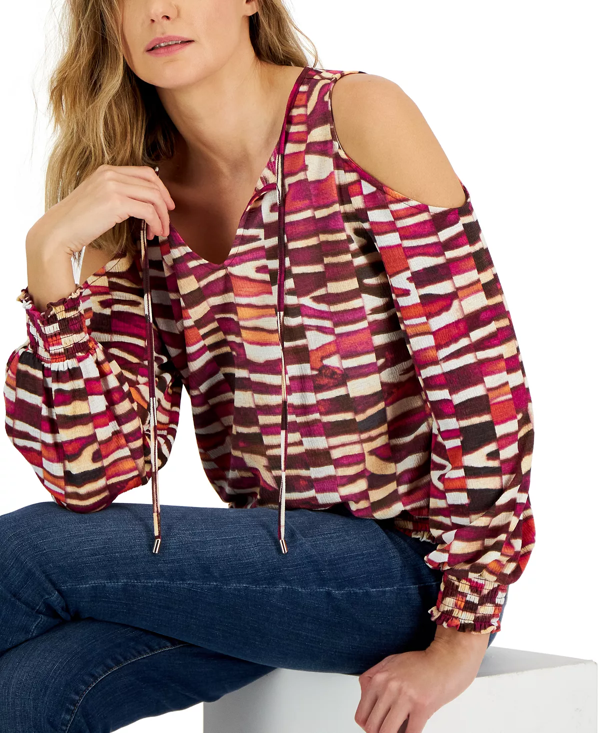 Level up your off-duty looks with this chic top from INC International Concepts, a cold-shoulder style with a fabulous print.