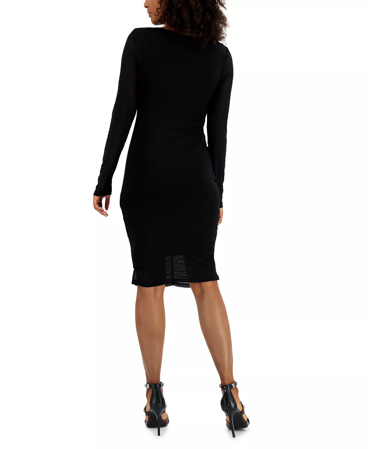 Gorgeous ruching down the front creates flattering dimension on this pullover mesh dress from INC International Concepts®.