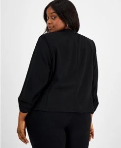 Bar III Plus Size Washed Satin Pleated-Sleeve Jacket, Created For Macy’s