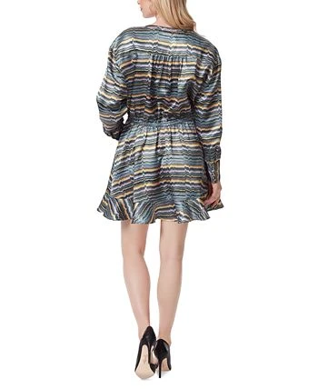 Finished in a super-chic space-dye print, this gorgeous shirt dress by Jessica Simpson is cinched at the waist and cascades into a flounce hem for a form flattering style.