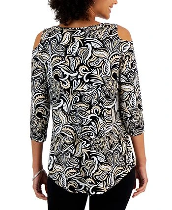 Freshen your look with this stylish top from JM Collection, a relaxed silhouette with cold-shoulder cutouts and a fun print.