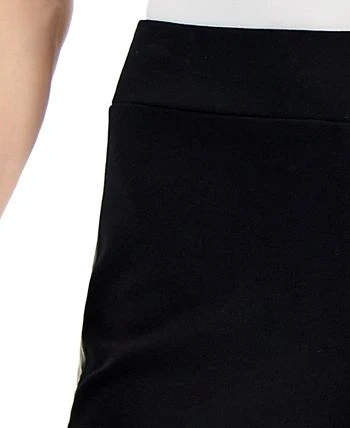 JM Collection updates a pair of slim-fitting ponté-knit pants with faux leather stripes down the sides for a sleek look.