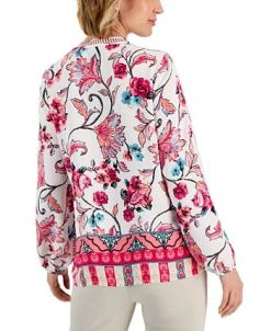 With 3/4-bell sleeves and an allover geometric print, this top from JM Collection shines when paired with your favorite leggings.