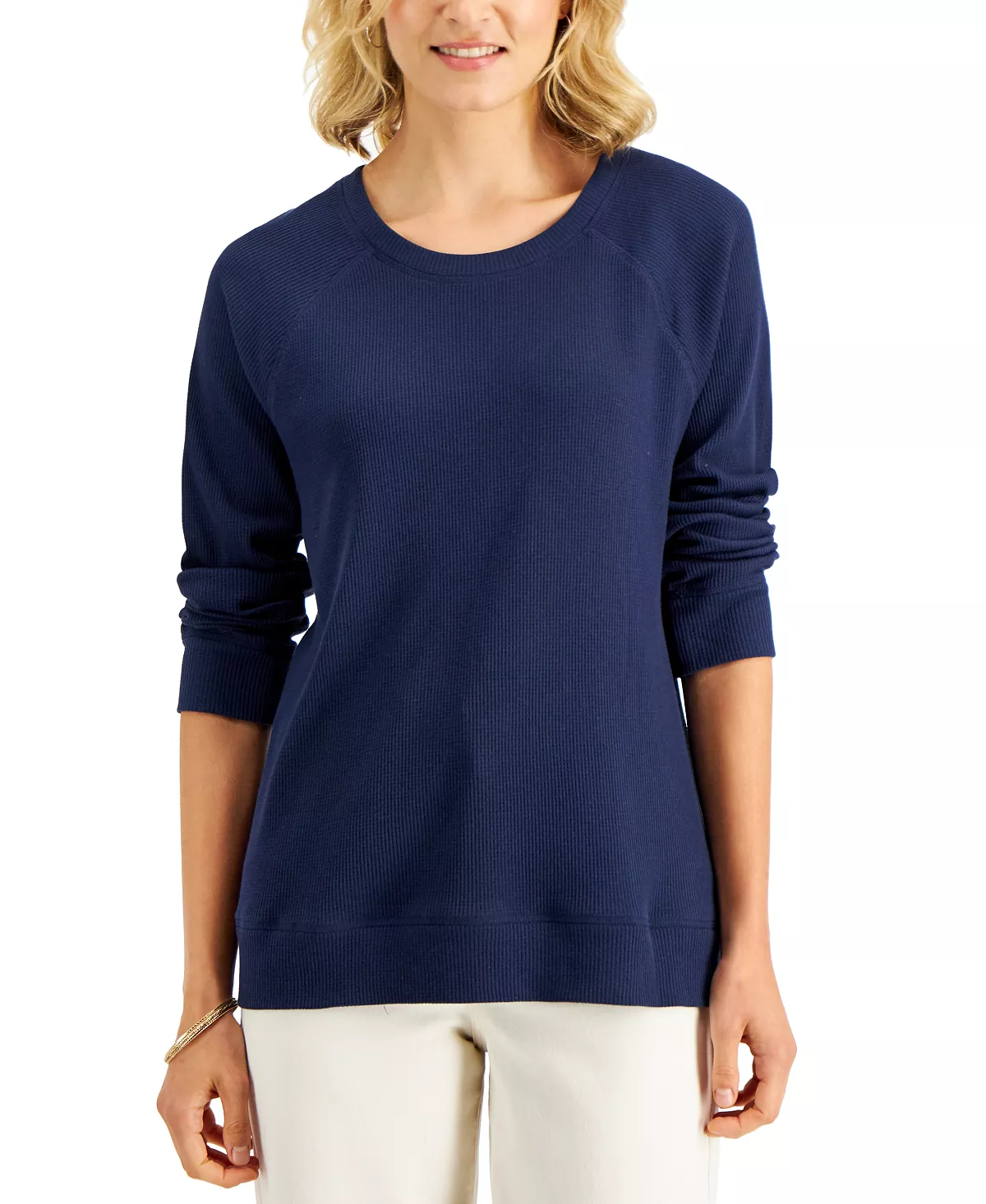A subtle waffled texture adds the perfect casual finish to this crewneck top from Karen Scott.