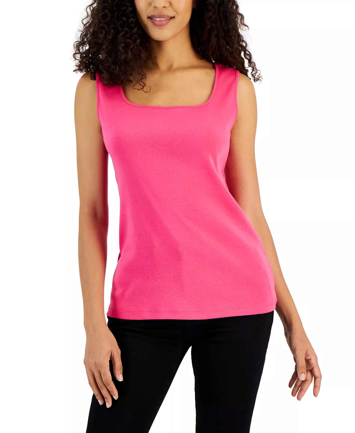 Upgrade your casual collection with this Karen Scott tank top, a relaxed silhouette in all-cotton with a distinctive square neckline.