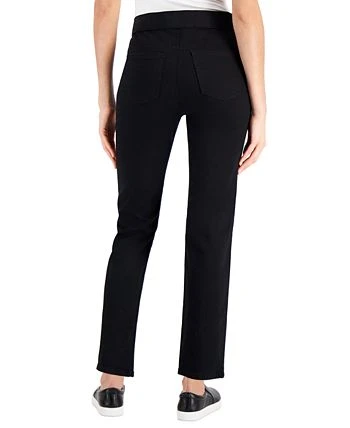 Karen Scott brings the style of jeans but the ease and comfort of pull-on pants with these ultra-chic black denim pants.