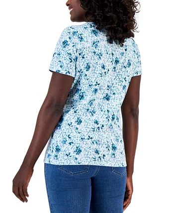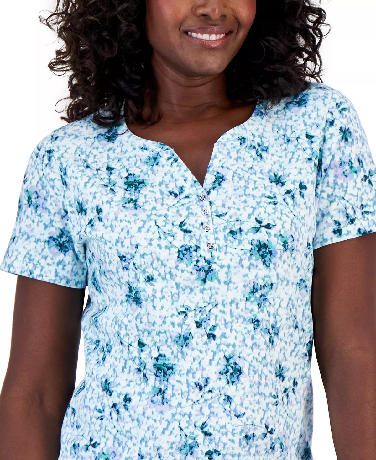 A soft painterly print polishes this look from Karen Scott, a relaxed Henley top with a fresh feel.