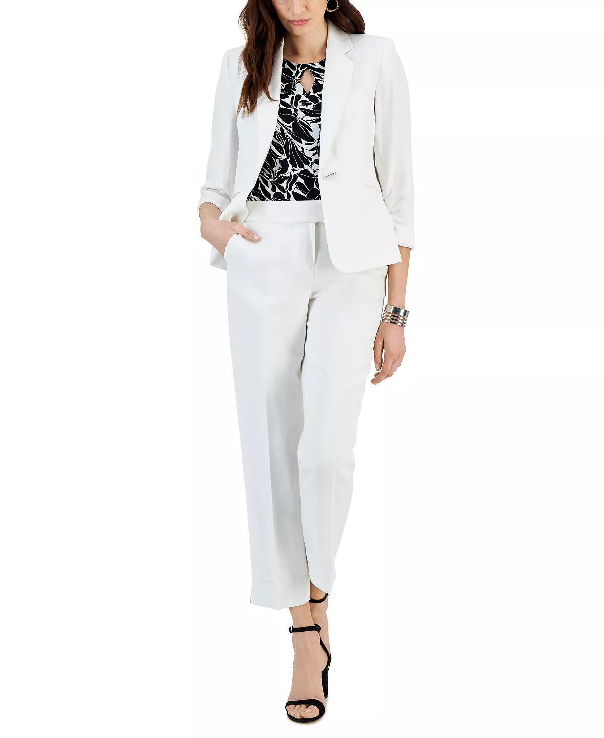 Kasper keeps your wardrobe stylishly chic with this pair of straight leg mid rise linen pants. Subtle side slits and an off-center snap loop closure brings the fashionable twist to your outfit with ease.