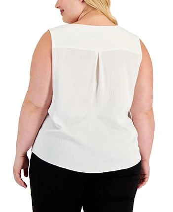A tiny bar embellishment highlights the classic V-neck on this plus size camisole from Kasper.