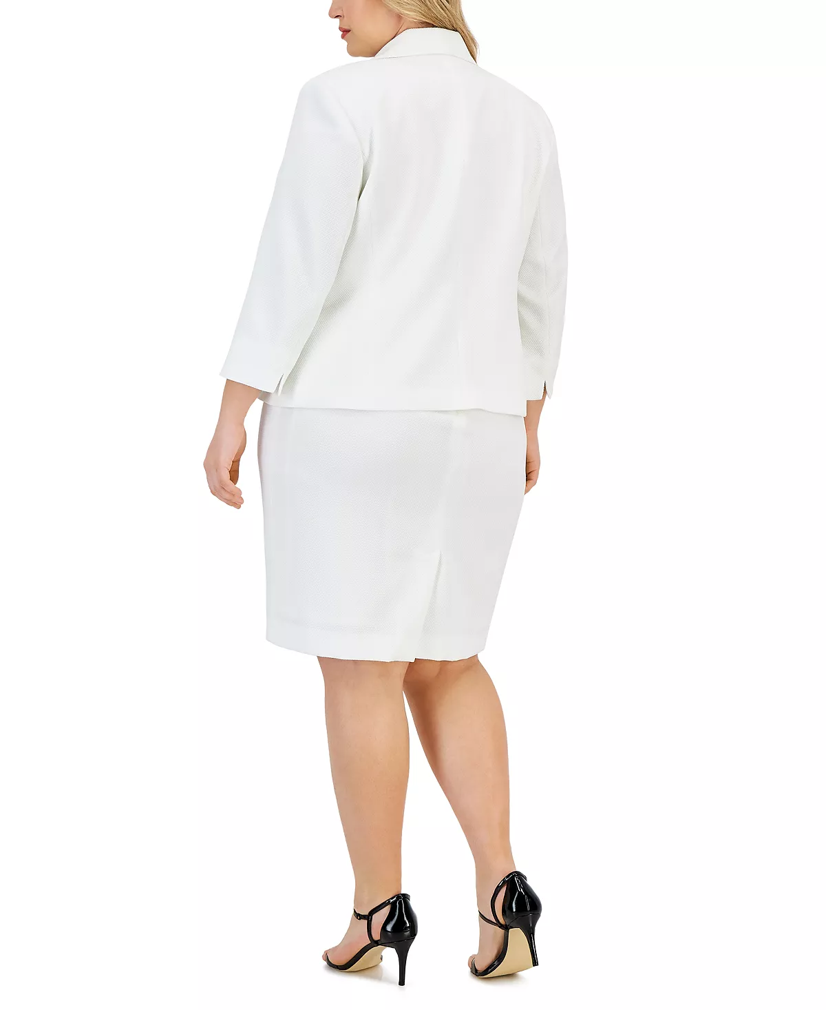 A classic and flattering choice for the work place. This plus size blazer from Kasper adds structure to your look, while the sheath dress flatters for a sleek professional silhouette.