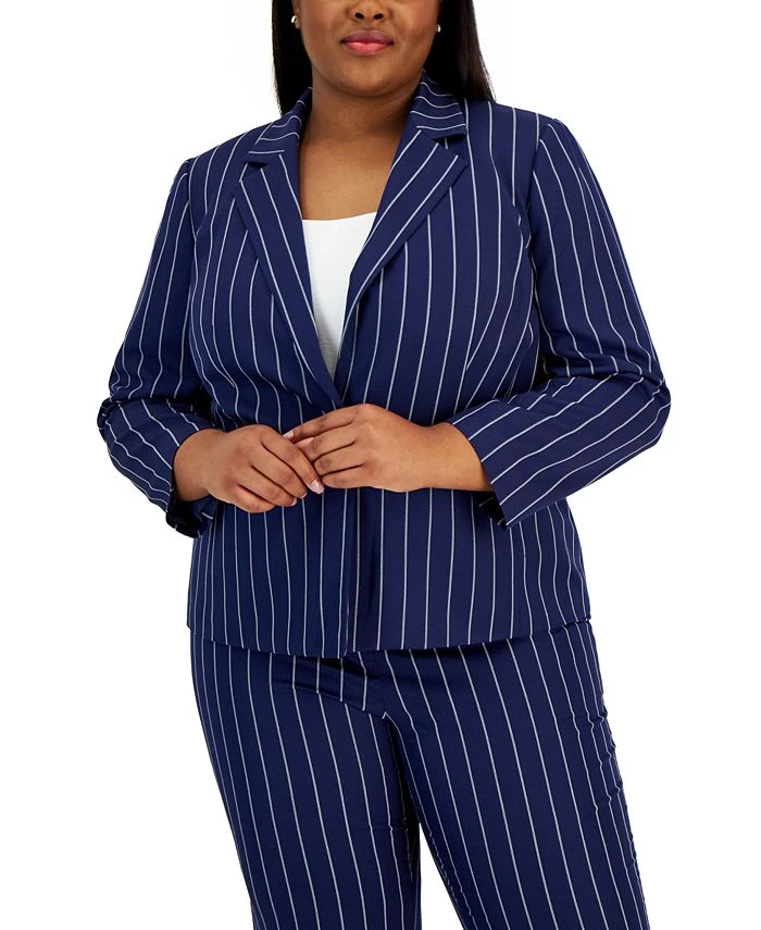 Kasper elevates your every day with this pinstriped notched-collar blazer featuring zipper pockets for added style.