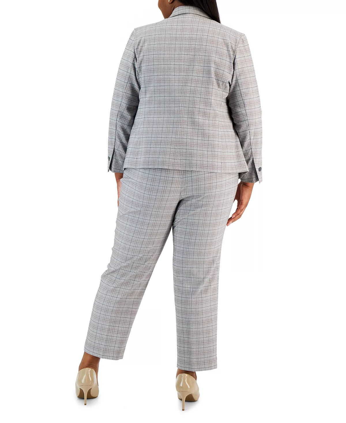 Create a classic workday look with a twist. This professional set from Kasper features a plaid blazer and matching pants paired with a chic twist-neck top.