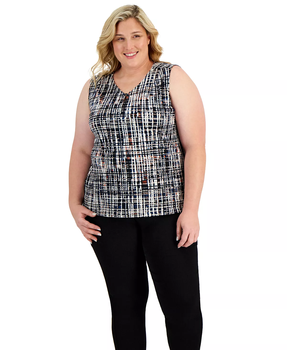 Kasper has your work-approved style covered with this plus size top designed with a pleated keyhole neckline.