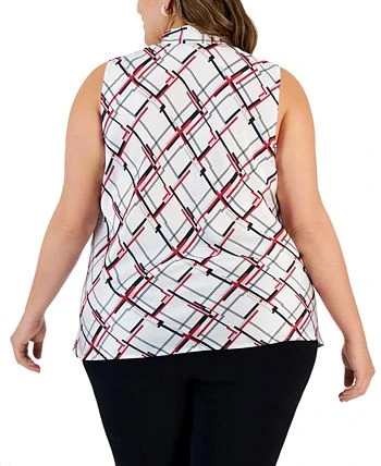 An instantly professional look, this plus size blouse by Kasper is finished with a polished print and features a sophisticated tie-neck design.