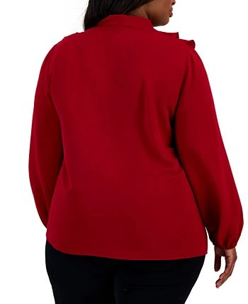 Ravishing in ruffles, this plus size blouse by Kasper will effortlessly elevate your workweek ensemble.