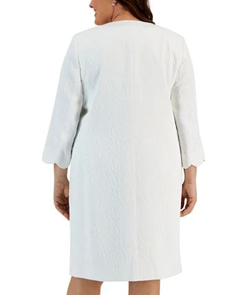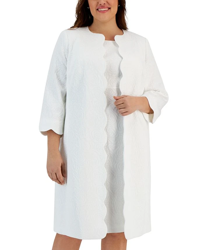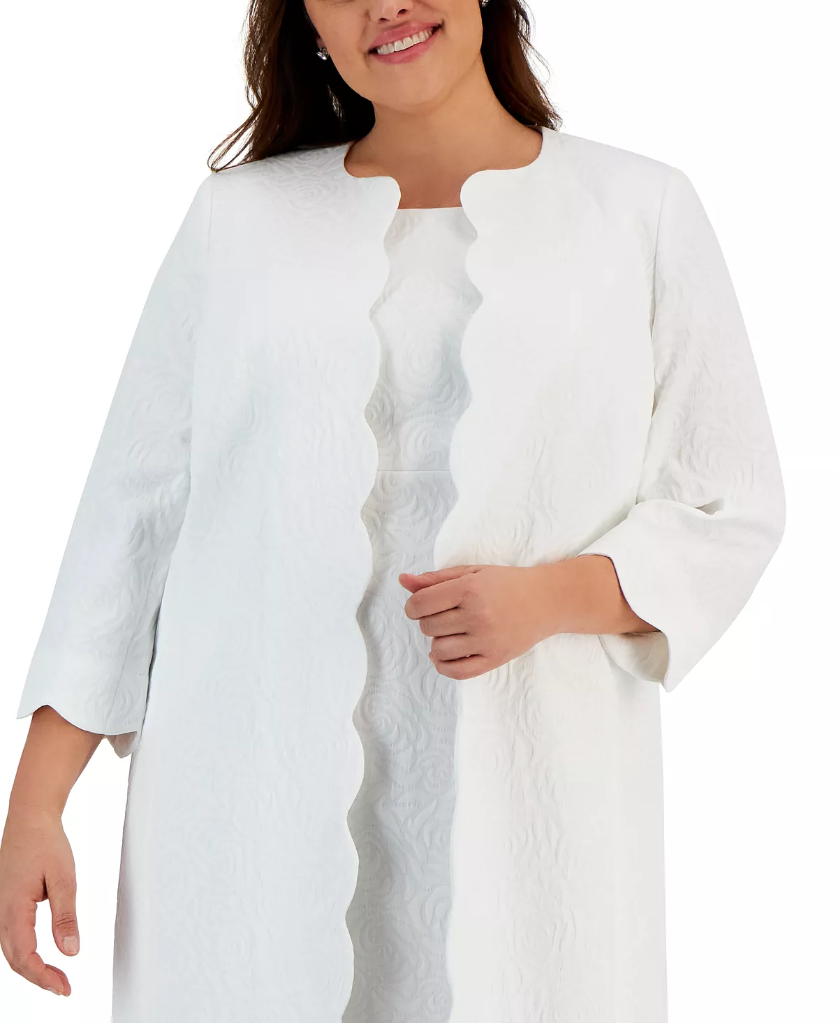 Top off your look with the elegance of this scallop-trimmed plus size topper jacket from Kasper.