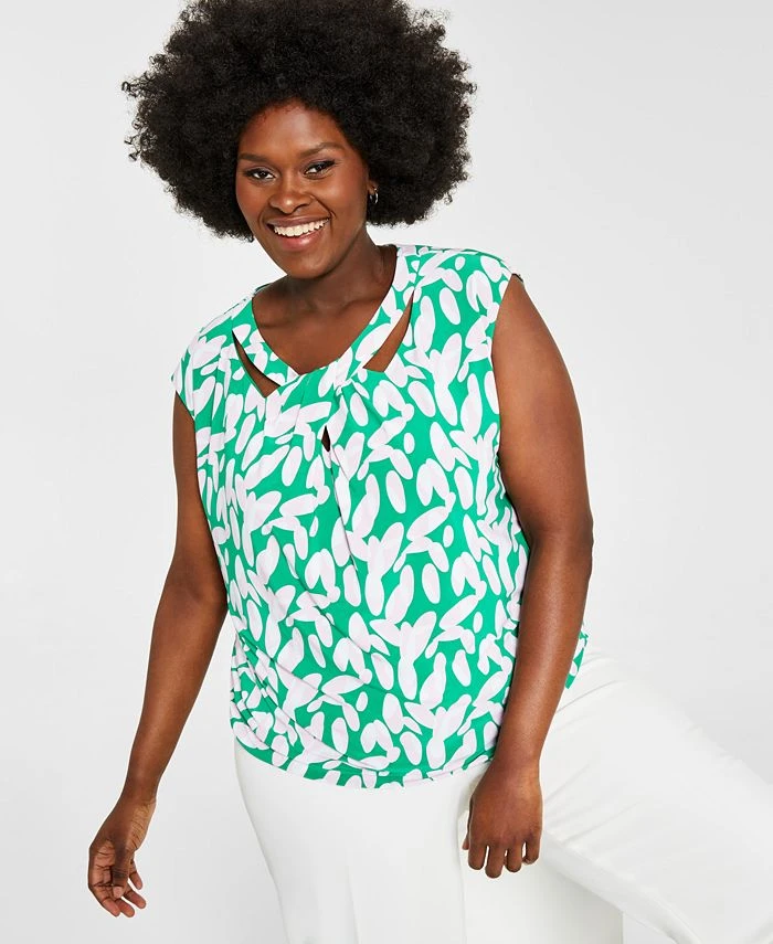 Printed to perfection, this Kasper plus size top can be worn alone or under a blazer for a chic professional finish.