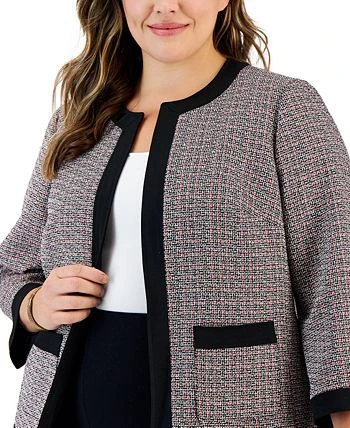 Polished contrast-trim frames this classic tweed jacket by Kasper, a timeless staple, this plus size piece adds instant sophistication to your workwear ensemble.