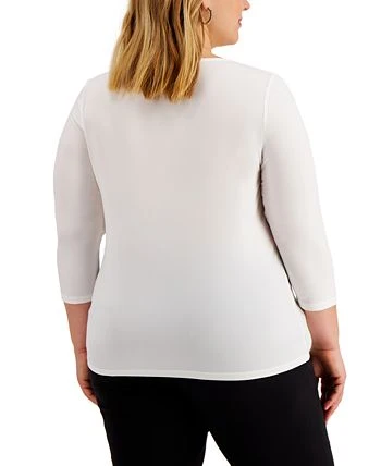 Keep your career look current in this plus size 3/4-sleeve top from Kasper designed with a twisted neckline.
